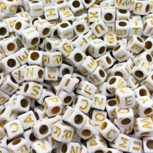 ENTREMEIO LETRAS CUBO 6X6 COM BRANCO/DOURADO ALFABETO 500G