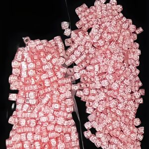 320 MIÇANGAS LETRAS CUBO 6X6MM TRANSLUCIDO ROSA/ BRANCO 50g ALFABETO