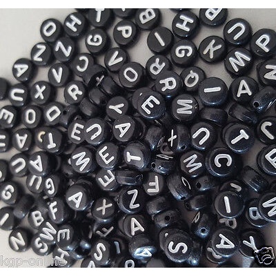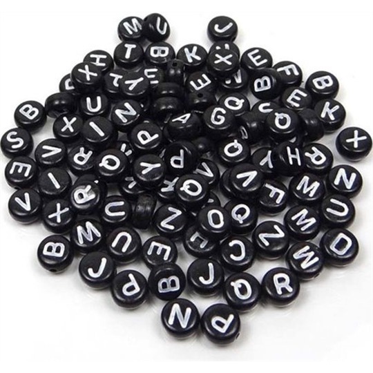 Miçangas Letras Infantil -Alfabeto – 7 mm PRETO/BRANCO 500g